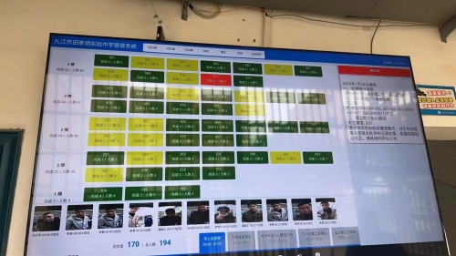 2024年1月4日,家校站与九江市田家炳实验中学合作,上线学生宿管系统,红黄绿三色管理学生考勤,出入数据大屏时时呈现,生成结果通报,帮助值班老师更好的考勤管理。